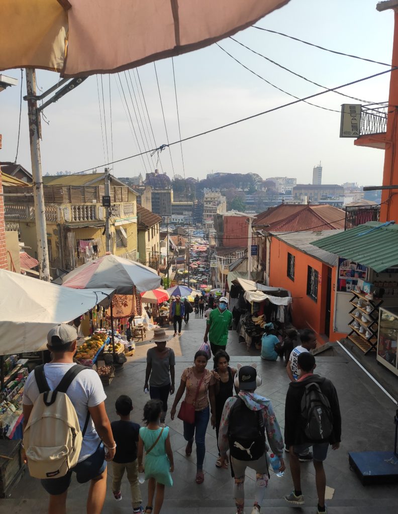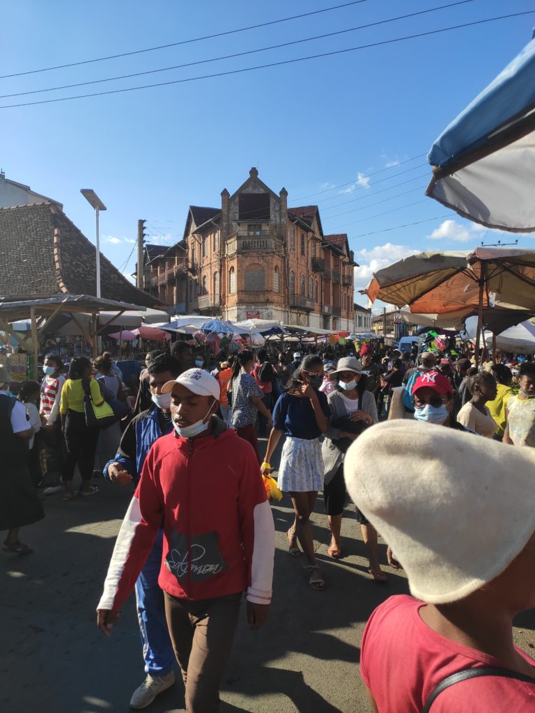 José m’y a accompagné dans son taxi. Lui actif dans le tourisme, a dû, à cause du covid, “pour ne pas rester les bras croisés”, se reconvertir en chauffeur pour assurer un minimum de son niveau de vie. Se promener à Analakely est apparemment dangereux pour les étrangers. On range alors son vangovango, ce qui brille et on met son téléphone à l’abri. José a relativisé les agressions que les blancs subiraient dans ce quartier: “ce n’est pas tous les jours”. Il a quand même tenu à m’accompagner tout le long – confirmant ainsi l’avis de plusieurs âmes à qui j’avais demandé conseil.